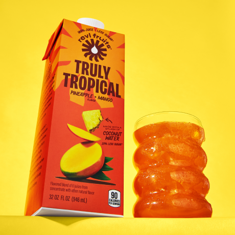 Shake things up with Revl FruitsTM Truly Tropical 100% juice. We let pineapple and mango juice work their magic, taking you to the tropics with a splash of coconut water. It’s fruit juice the way you like it: a refreshing beverage with NO added sugar*. NO artificial sweeteners, colors, flavors, or preservatives. This 100% juice beverage has 25% less sugar than the leading 100% juice and is non-GMO, so you can sip on refreshing, bold flavor without compromising on nutrition.** Stir Revl FruitsTM juice into your favorite smoothie or enjoy in a glass on its own.