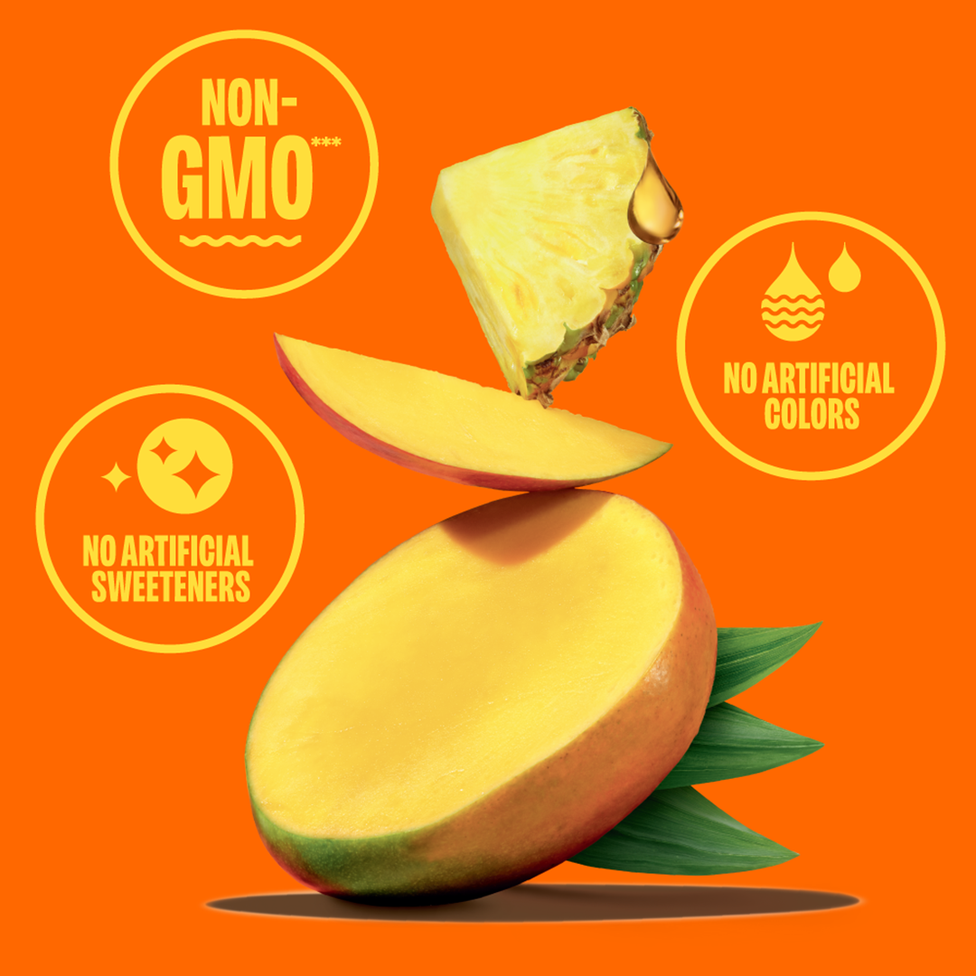 - REFRESHINGLY DIFFERENT™. Real fruit juice. No artificial sweeteners, flavors, colors, or GMOs***